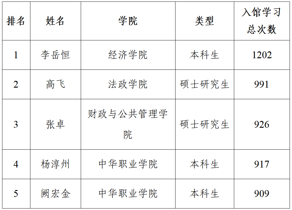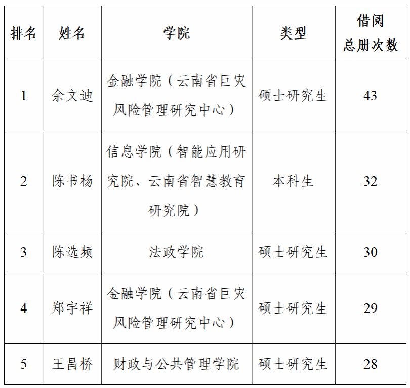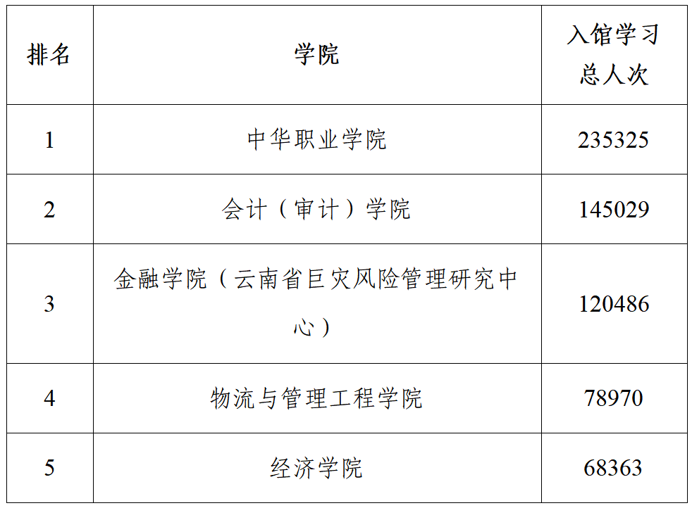 值此2026年“世界读书日”暨学校第二十届校园读书月“阅见千里,思骋无疆”系列活动开展之际,为深入贯彻落实习近平总书记关于推动全民阅读、建设书香社会的重要指示精神,全面落实《全民阅读促进条例》,紧扣学校“三进一出”工作部署,坚守立德树人根本任务,充分发挥先进典型示范引领作用,引导广大师生走进图书馆、用好图书馆,营造勤学善思、书香浓郁的校园文化氛围。经数据统计,图书馆决定对2025年度入馆学习、图书借阅等方面表现突出的集体和个人予以通报表彰,现将名单公布如下: